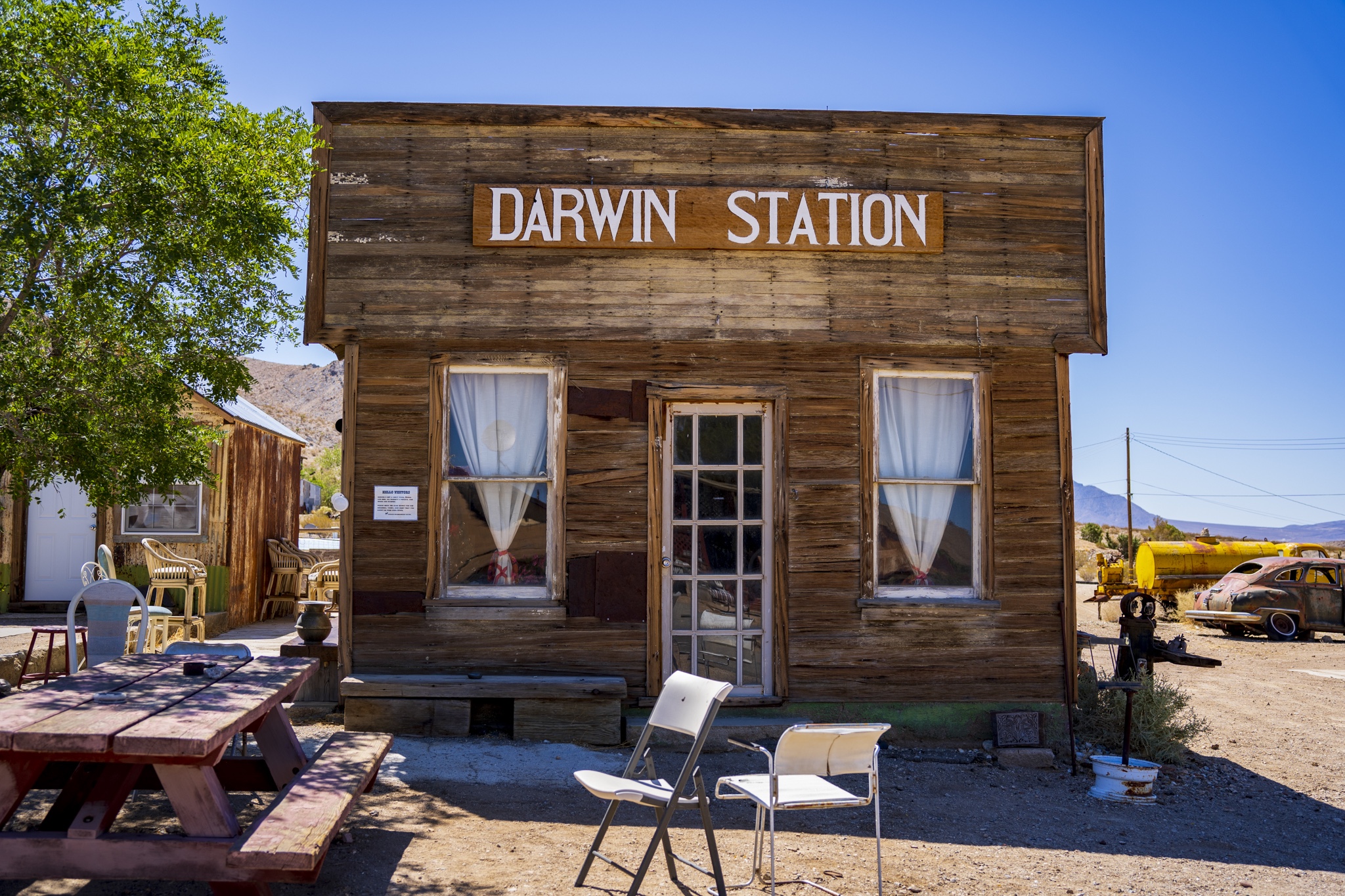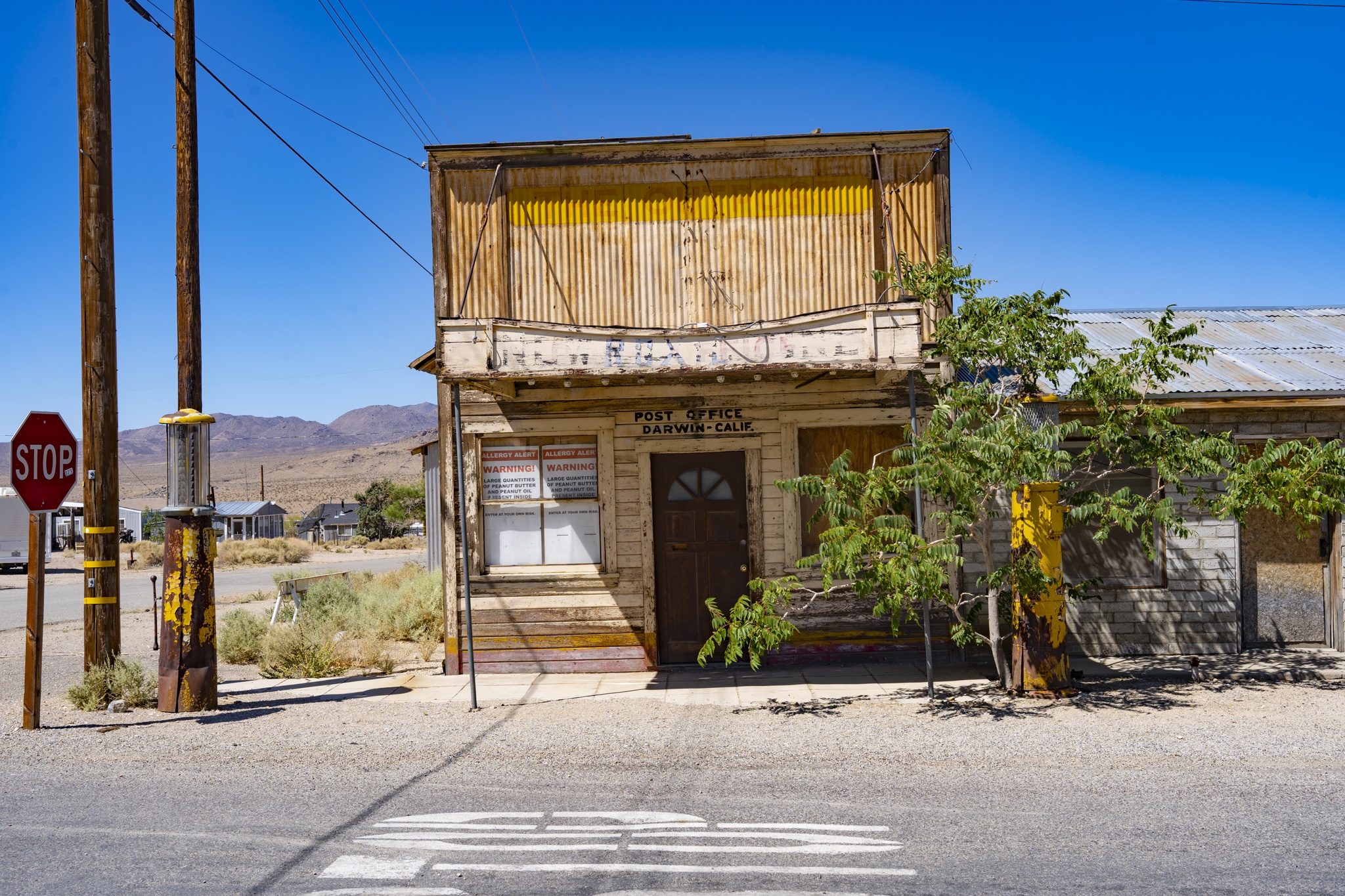 Darwin, many would say, is a ghost town and certainly with its own backstory and history. I’ll dive into that in a minute. There are still a small group of people that live here and call this area home. It’s definitely for those wanting to live off the grid, that’s for sure. There are no stores here or services of any kind, other than the local Post Office. As a matter of fact, keeping the Post Office open and operational is the only thing that allows Darwin to keep its designation as a town vs losing that distinction. The Posr Office does sell sodas as well but that’s about it. In fact, while we walked around the different streets, there were signs posted in some of the windows letting people know that Darwin is a living town, not a ghost town, and to respect the buildings and properties because people still live in them. The closest services and schools would be about 25 mins away and it does get very hot here in the summer for sure.