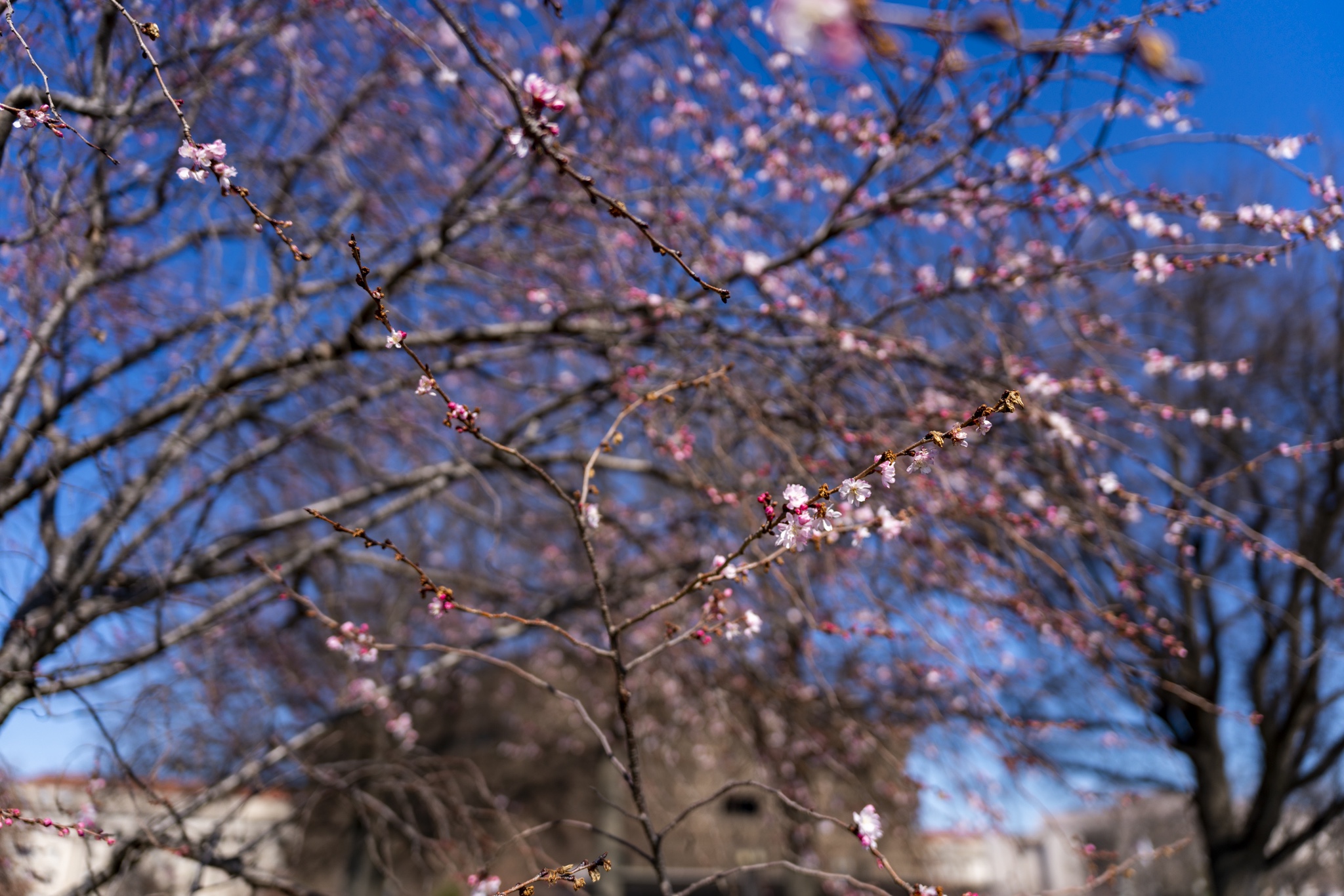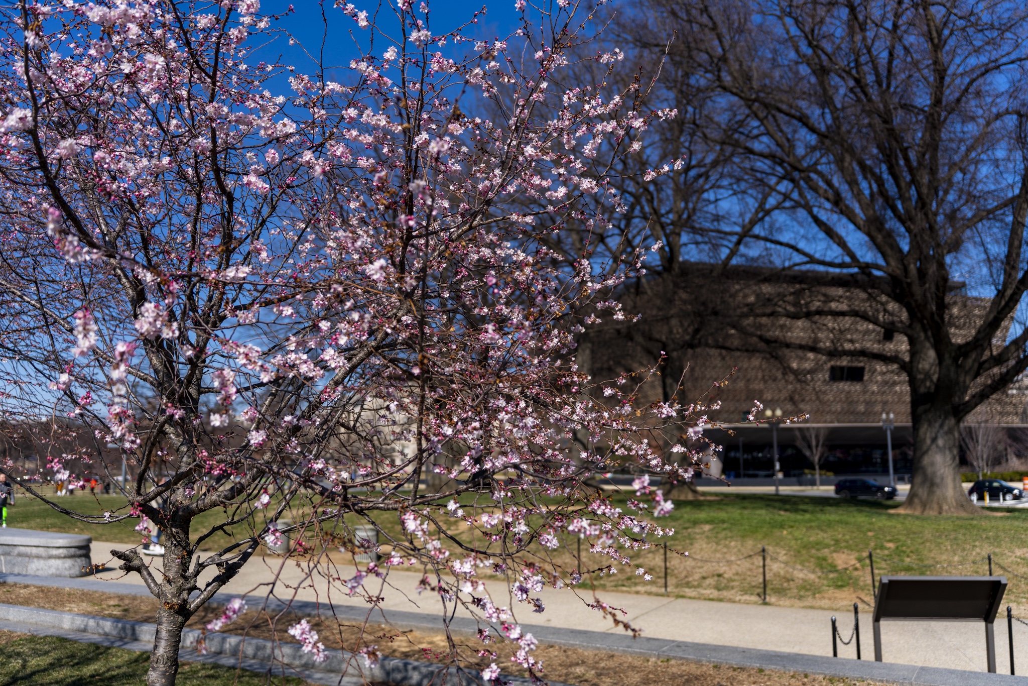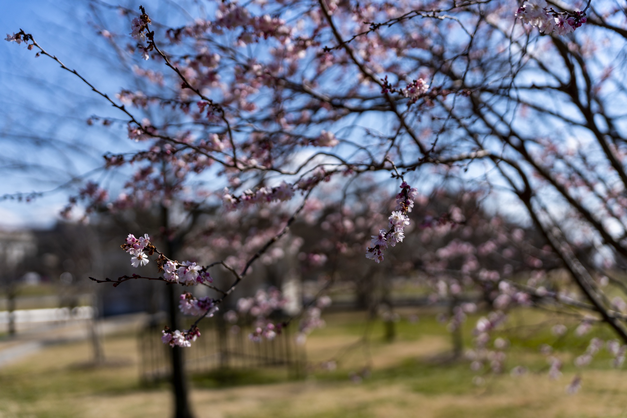 While in DC, I was on the hunt for any cherry blossom trees I could find, in hopes that they might be in partial bloom since it was only the beginning of March. I found a great spot for photos with these trees all around the Washington Monument. Obviously not yet in full bloom, but enough to capture the great colors with some nice bokeh effect.