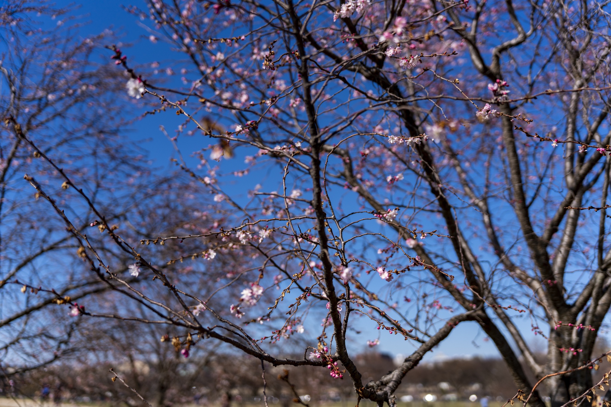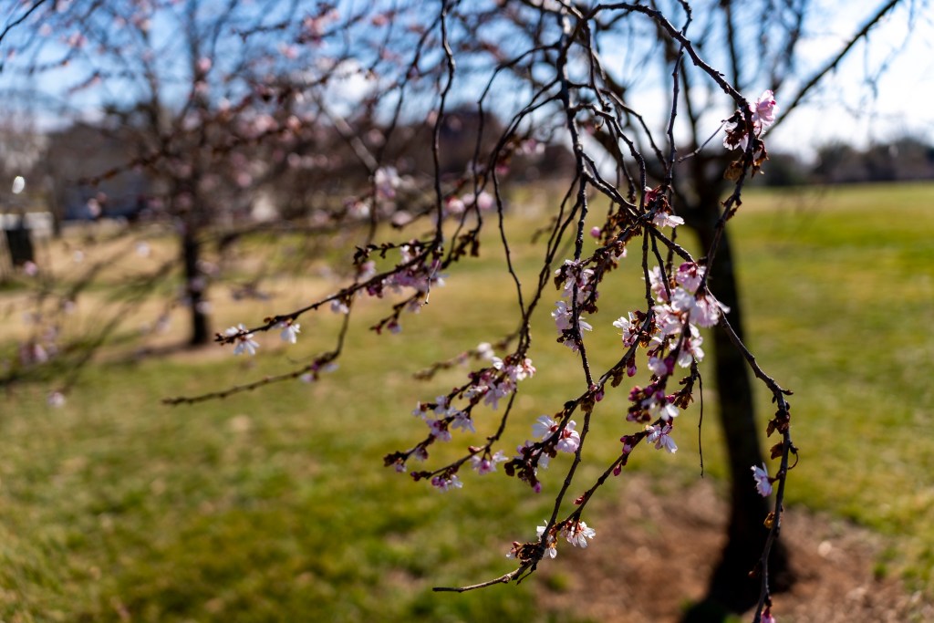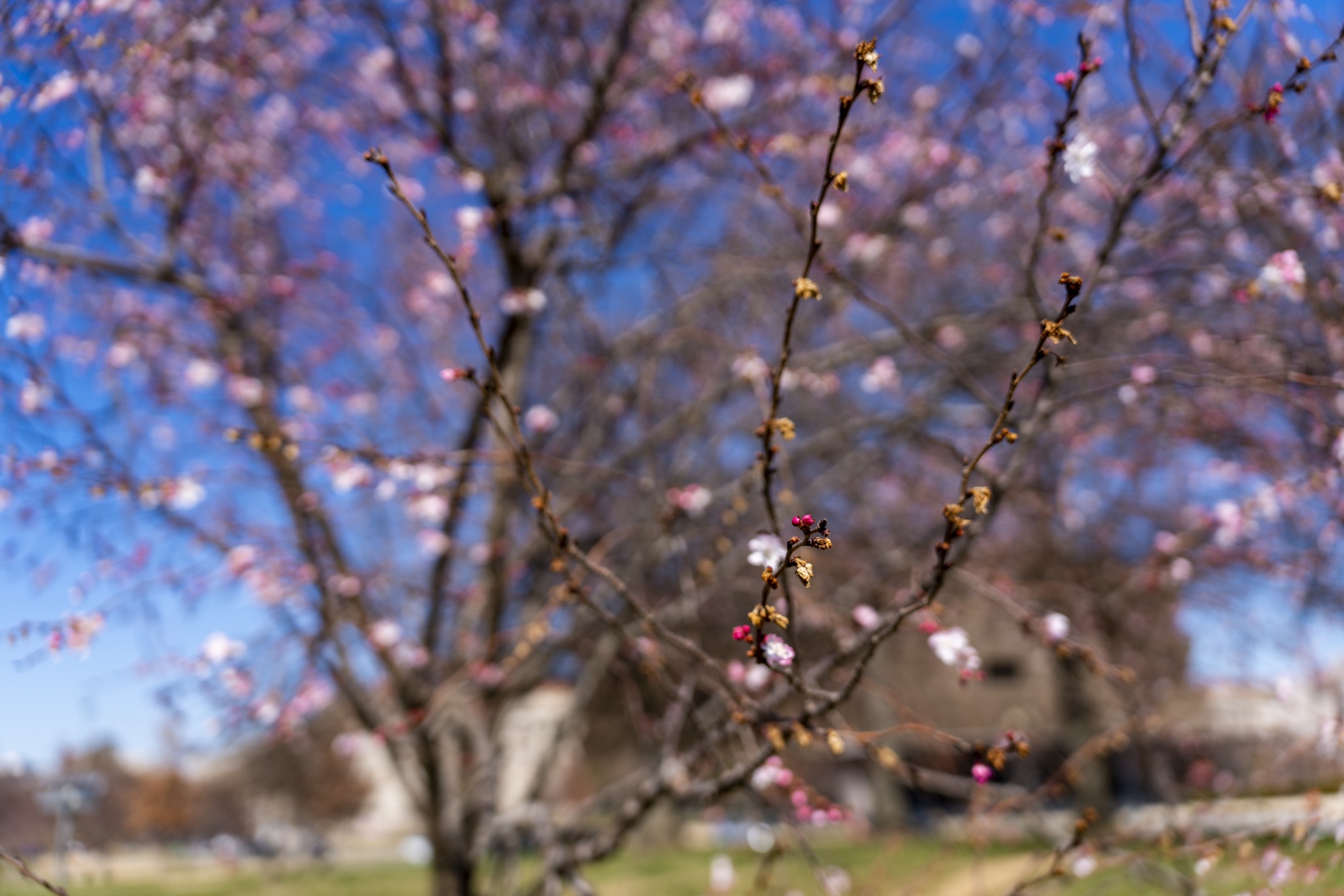 While in DC, I was on the hunt for any cherry blossom trees I could find, in hopes that they might be in partial bloom since it was only the beginning of March. I found a great spot for photos with these trees all around the Washington Monument. Obviously not yet in full bloom, but enough to capture the great colors with some nice bokeh effect.