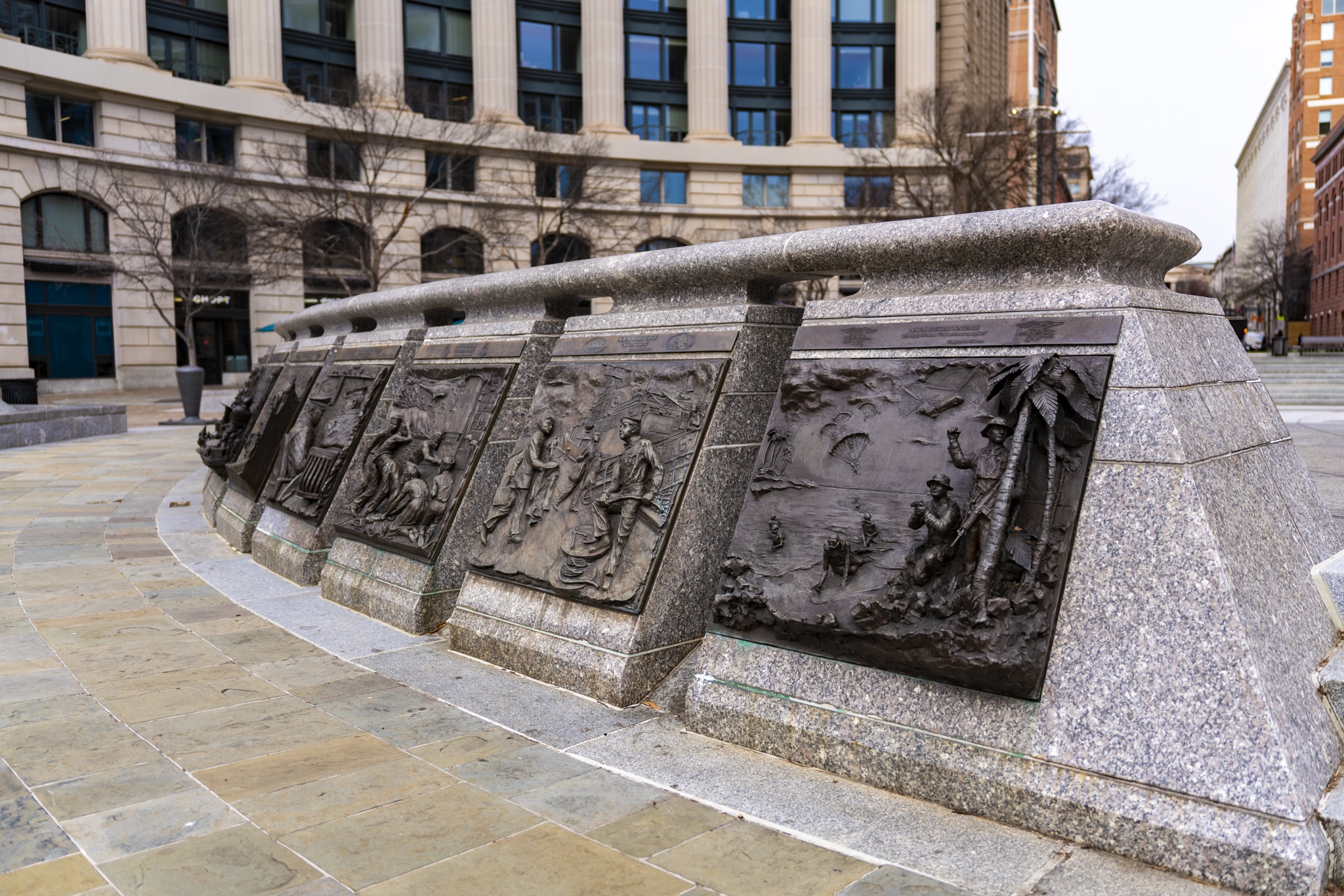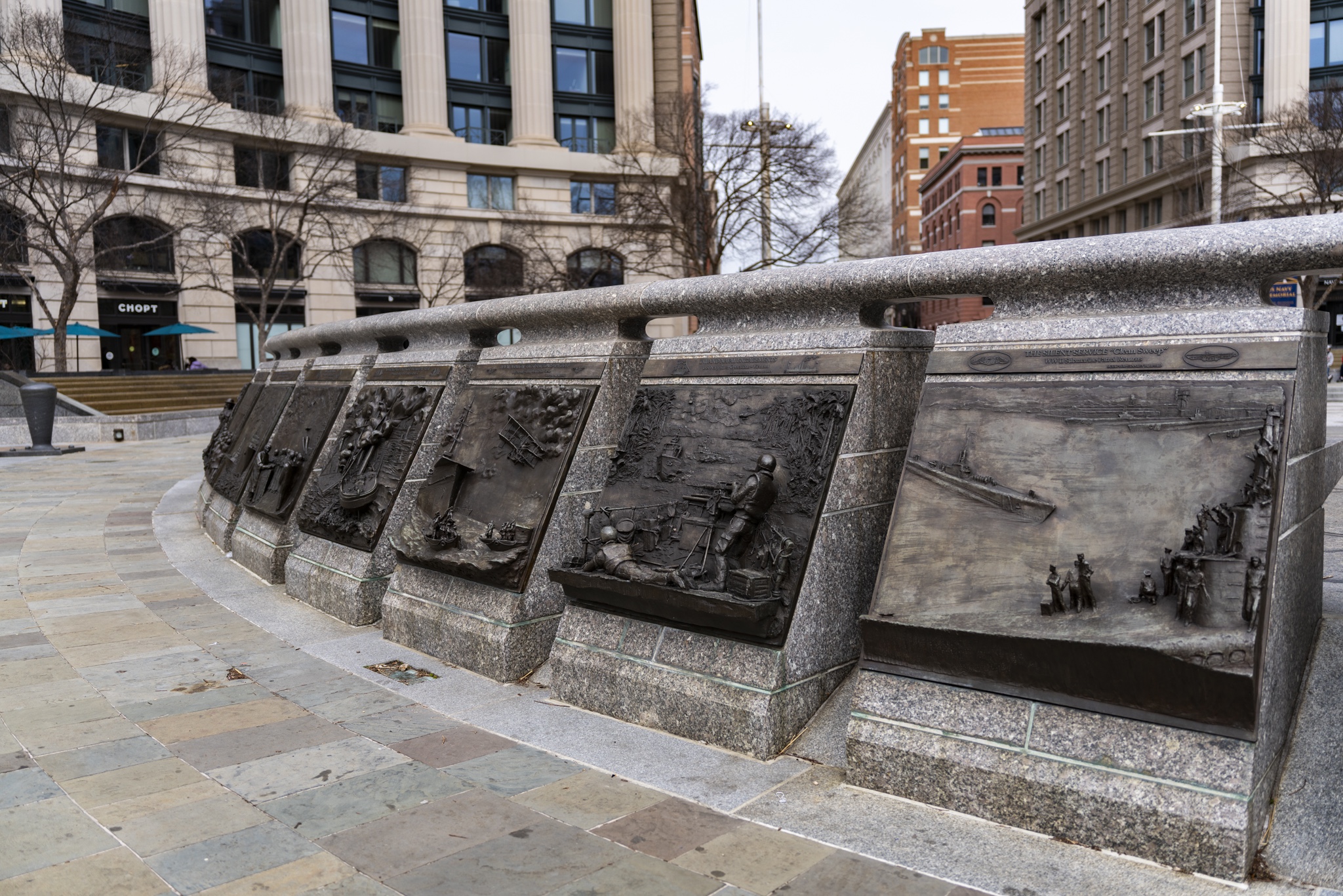 Another favorite spot I stumbled upon was the Navy Memorial, which is in Memorial Plaza. The plaza sits midway between the Capitol and the White House and across the street from the National Archives building (great museum btw!). Memorial Plaza contains these 26 bronze sculptures depicting famous parts of Navy history. In the middle of the plaza is the “Granite Sea” which is the largest map in the world. Really a great area the photograph and visit.