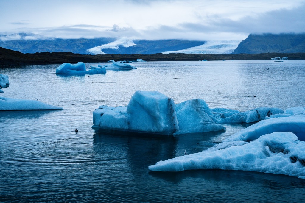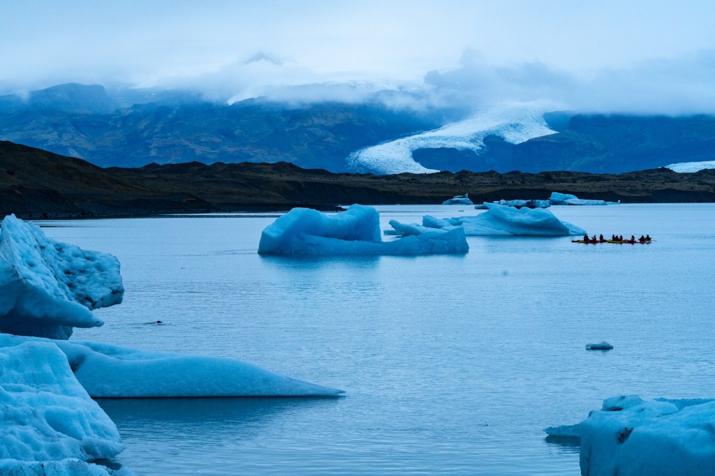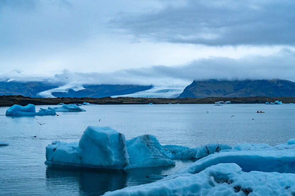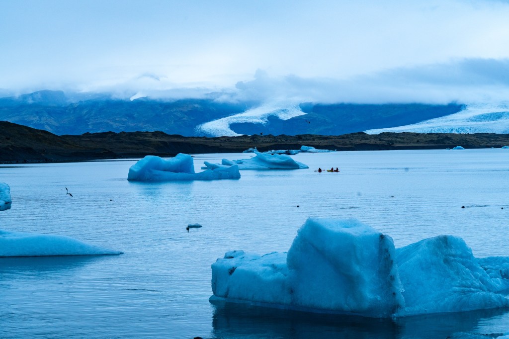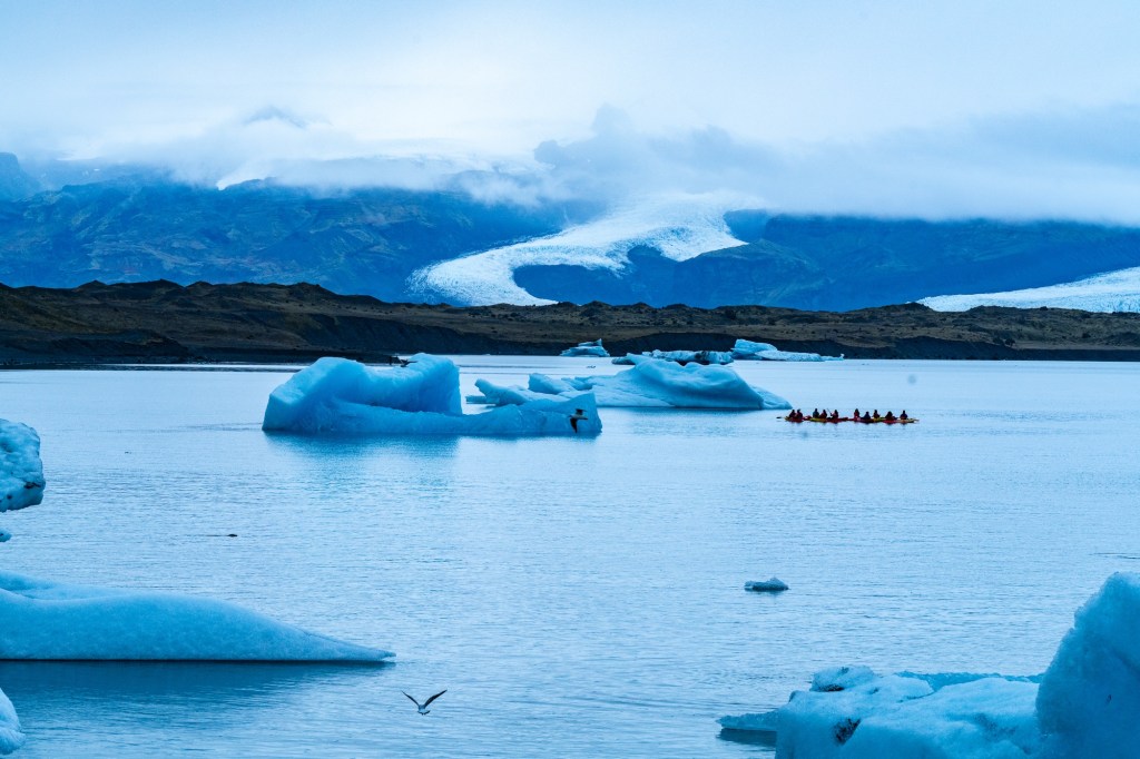 The blue waters are dotted with icebergs from the surrounding Breidamerkurjokull Glacier. A paradise of wonder for both adventurers and photographers.