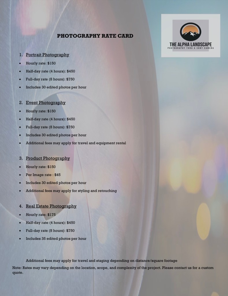 2022/23 rate card for services. Not seeing your need listed here? Please reach out. We will work with you on a customized plan for your needs.